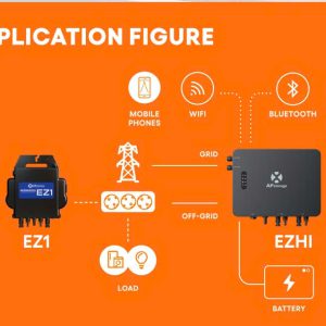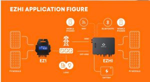Biến tần vi mô hybrid EZHI, được thiết kế đặc biệt cho các hệ thống điện mặt trời ban công (Balcony Solar) hoặc hệ solar tự lắp (DIY) quy mô nhỏ tại sân vườn, và di động.